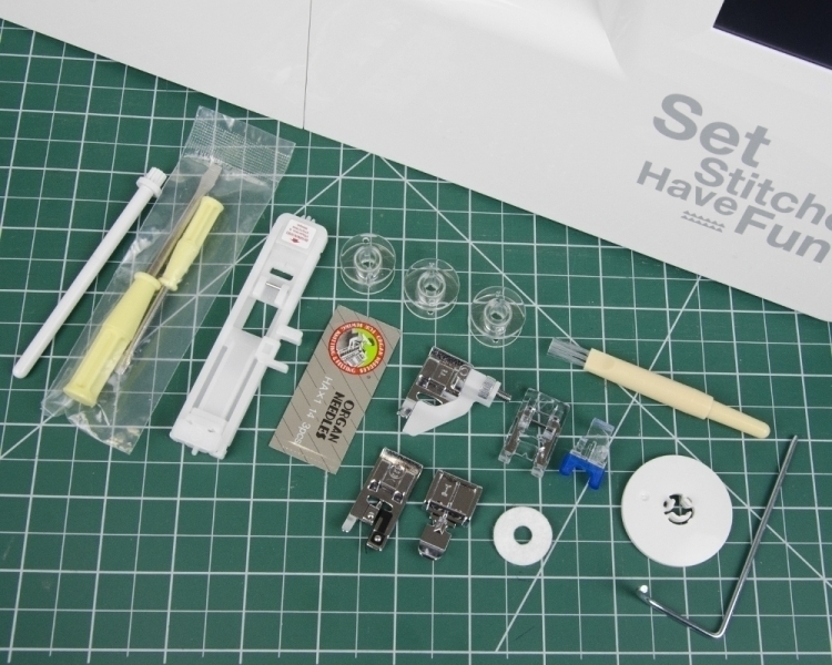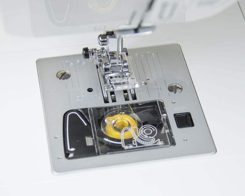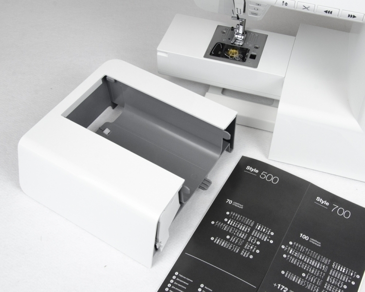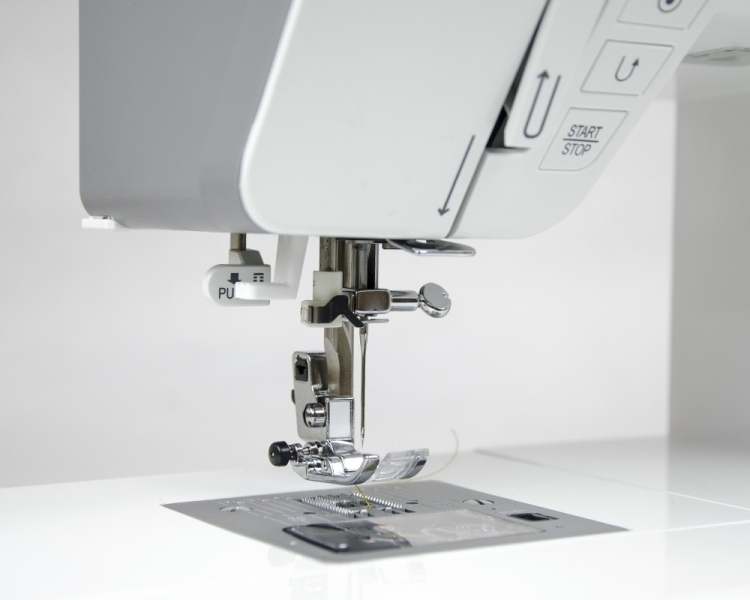 - Мощный мотор, 7-ми сегментная рейка-транспортер, регулятор давления лапки, нитевдеватель