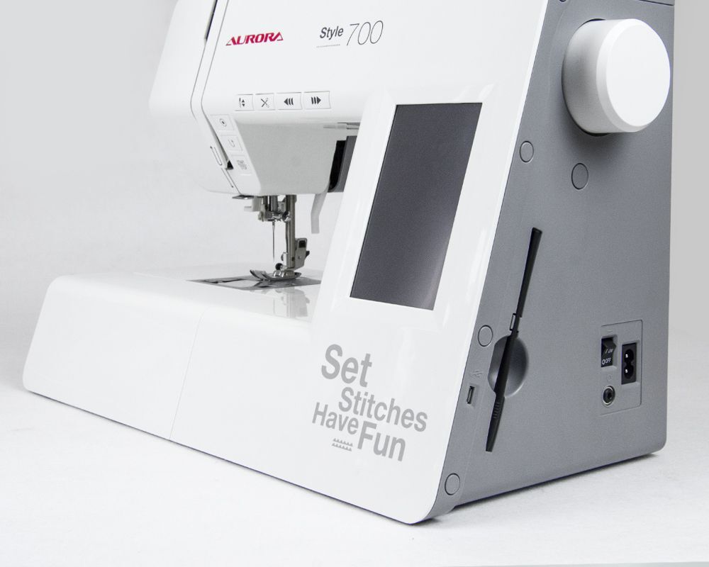 Модель оснащена цветным сенсорным монитором и стилусом. В памяти компьютера записана полноценная инструкция, подробный швейный советник, а также есть 10 творческих мастер-классов с инструкциями. В арсенале модели 100 операций, включая 7 видов петли и алфавит. Есть возможность комбинировать и отзеркаливать нужные стежки, затем сохранять в памяти машины. Кнопки управления включают варианты для шитья без педали, автообрезки верхней и нижней нити, автозакрепки и реверса, выбора положения иглы и переключения на двойную иглу, переключатель скорости строчки. Давление лапки можно регулировать вручную. На машине установлено двойное освещение, есть нитевдеватель и рукавная платформа.