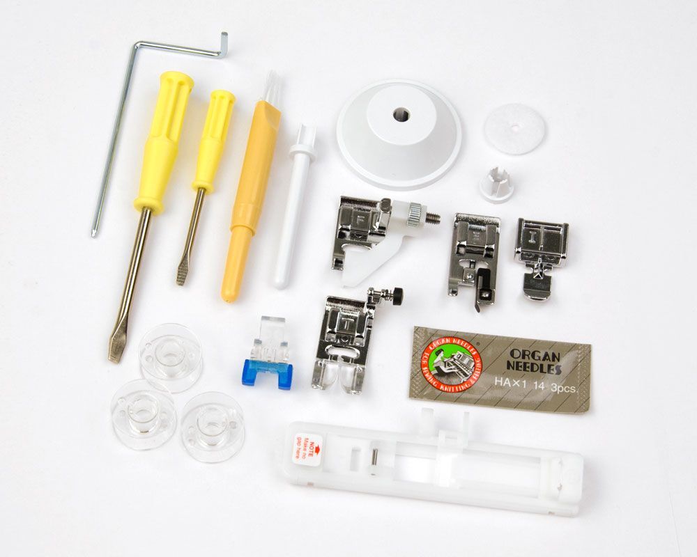 В комплект поставки входит приставной столик, а также 7 прижимных лапок - все готово к шитью с комфортом!