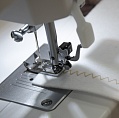 Максимальная ширина строчки 5 мм. Все установки, такие как натяжение нити, ширина строчки и длина стежка, а также выбор строчки, можно осуществлять двумя регуляторами на лицевой панели и регулировочными дисками на верхней панели корпуса машины. Встроенный нитевдеватель и нитеобрезатель помогут упростить процесс заправки машины и завершения шитья. В комплект с машиной Bernette Sew&Go 5 входят четыре лапки.